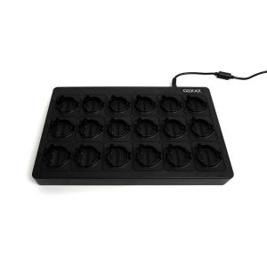 The Ozobot charging cradle is designed to be placed on a desk or mounted on a wall, it features a low-profile design with slots for up to 12 Bit+ robots. An AC/DC adapter for plugging the charging station into a standard electrical outlet and an integrated USB-C port for charging peripherals are included in the package. This wireless charging cradle is only compatible with Ozobots of the Bit+ series sold since the fall of 2022. It is not compatible with earlier models.Technical specifications